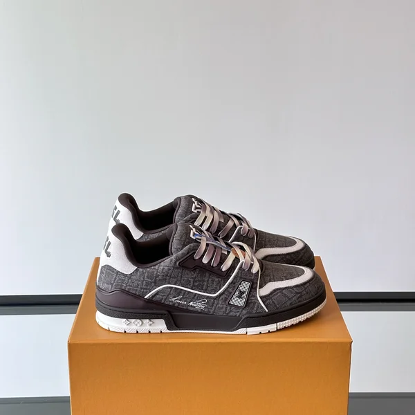 p230L 奢品 Trainer高版本休闲运动鞋 本款运动鞋选用 Damier 粒面牛皮革临摹 Damier 帆布的两式经典纹理令鞋面的繁复工艺更显瞩目创意注胶橡胶外底升级舒适体验棋盘格设计简洁科技橡胶外底配有创新凝胶内垫舒适感更为出众外底饰Monogram Flowers图案经典的篮球鞋款 Size39443845定做