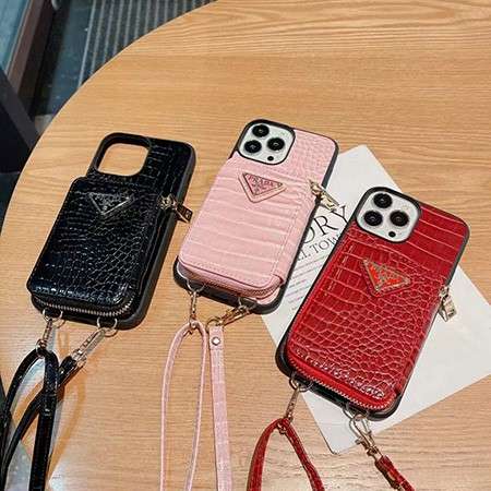 プラダ アイフォーン14plus ケース 肩掛けアイフォーン14プロマックス ケース 背面にカード入れ付き Prada アイフォン 13 pro max/13pro 保護ケース クロコ柄 iPhone 12pro/12promax カバー レザー