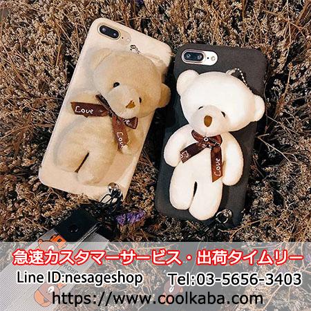 【商品名】ブランド くま ぬいぐるみ スマホケース iphone8/8plus かわいいケース 動物 冬の限定アイテム アイホンXカバー ネックストラップ付き 女性向け 人気ケース iphone7plus保護カバー 柔らかい ふわふわ