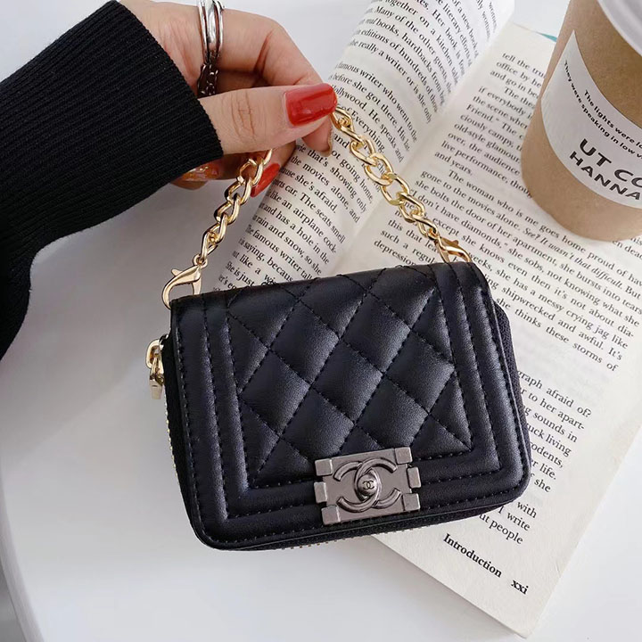 綺麗 AirpodsケースChanel 女性愛用 chanel ファスナー 無線 Airpods Pro ケース 耐衝撃 イヤホン収納ケース 売れ筋 アーガイルチェック レザー#革製 欧米風 金具ロゴ付き ロゴ付き bluetooth case ストラップ付き ハイブランド オシャレ