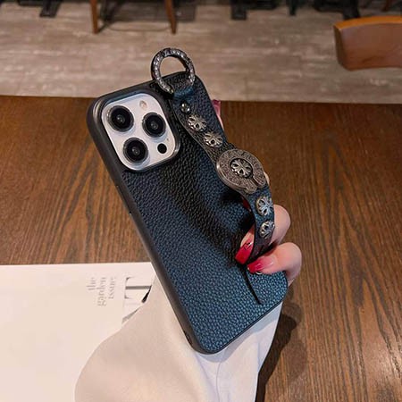 ChromeHearts アイフォーン15スマホケース クロームハーツ 手首ストラップ付き iphone14 ケース カジュアル 金属ロゴ付き iphone14 pro max カバー ChromeHearts 皮製 アイフォーン13ケース