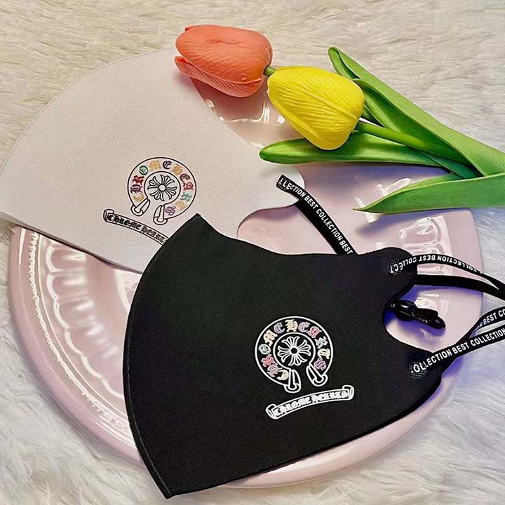 ChromeHearts ロゴ付き マスク 極細繊維 UVカット 芸能人愛用 流行り 綺麗 調節可能 シンプル風 通気性良い ブランド 白黒 四季通用