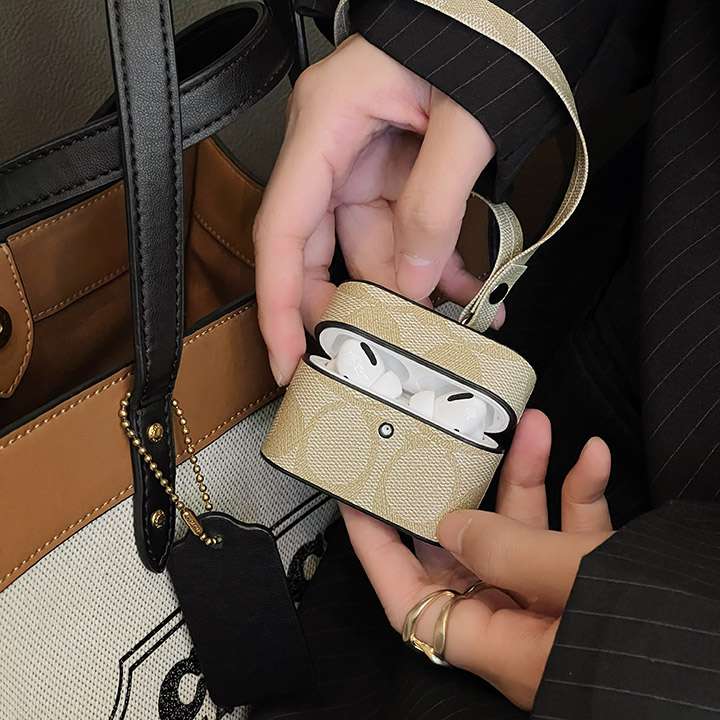 ロゴ付き 綺麗 AirPods Proカバー 欧米風 ブランド bluetooth case 無線 友達へのプレゼント Coachエアーポッズ ケース 革製 ストラップ付き コーチ 耐衝撃 売れ筋 高級感