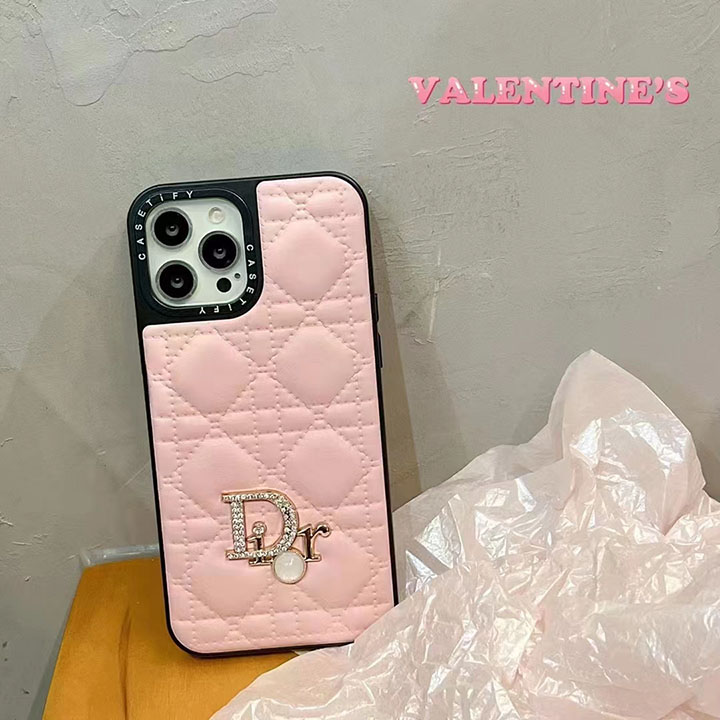Dior iphone16/16promax携帯ケース 裏のハート柄 レザー アイホン15Pro/15Plusケース ラインストーン付き ブラック カメラフレーム ディオールiPhone14/13Pro/X/XMスマホケース 女性 ブランド