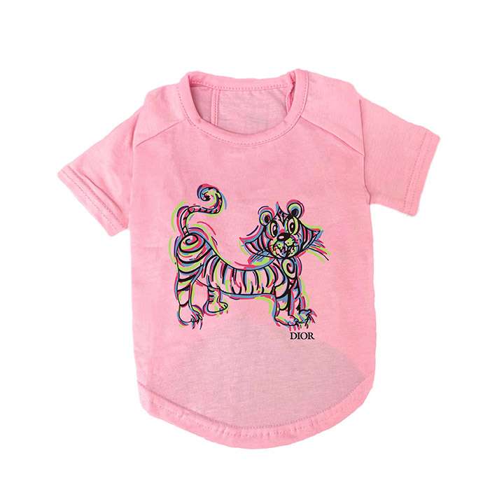 ディオール ペット服 コットン半袖 Tシャツ 春 夏 秋 ブランド DIOR 犬服 プリント Tシャツ 猫 中小型犬 犬の服 前面トラパターン 可愛い おしゃれ