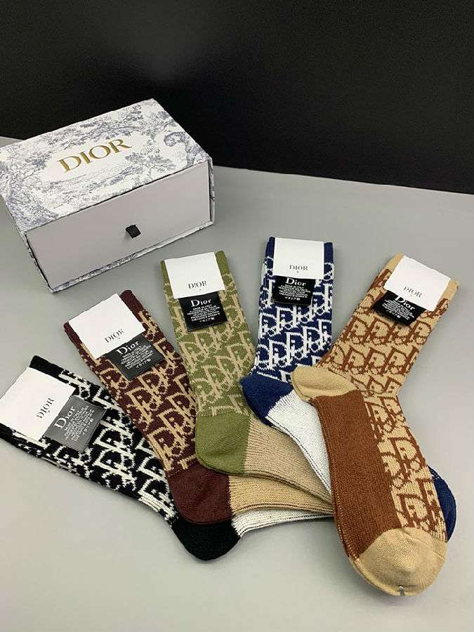 高品質 Dior 5足セットソックス 厚い 吸汗 防臭 コットン ブランド ロゴ付き ディオール カジュアルソックス 売れ筋 通気性いい おしゃれ メンズレデイース 送料無料