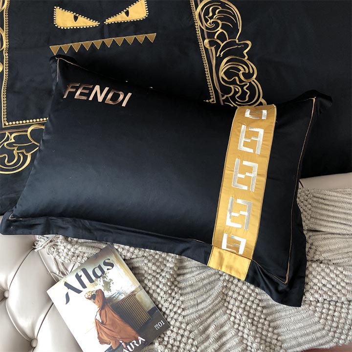海外販売 シルクフロス 寝具セット 刺繍入り Fendi 秋冬新品 洗濯可 送料無料 ブラック 快適睡眠 ブランド ロゴ付き 大判 ブランド寝具 字母 フェンディ 布団カバーセット 欧米風 売れ筋