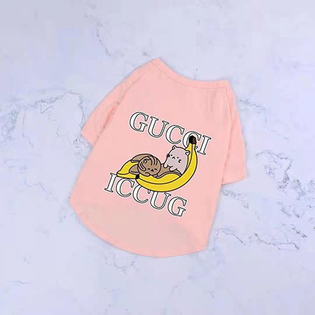 Gucci 春夏対応 中小型犬 アニメ風 犬洋服 ハイブランド グッチ ロゴ付き ペットウェア ドッグウェア バナナ柄 個性 犬Tシャツ フレンチ・ブルドッグ シュナウザー コットン Tシャツ かわいい