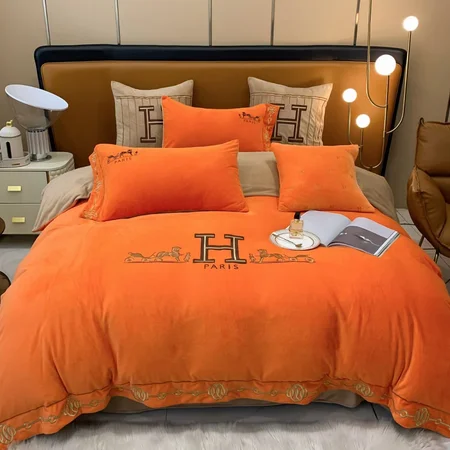 エルメス風寝具セットは、秋冬の季節にぴったりな高級感あふれるベルベット素材を採用した4点セットです。