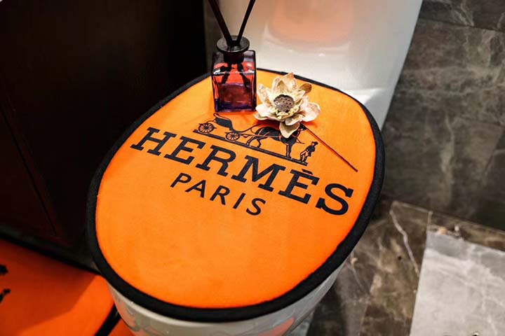 【3点セット】エルメス 定番柄 ドアマット/u型トイレマット/フタカバー 北欧風 男女兼用 柔らかい 吸水 滑り止め バスマット 遊び毛防止 流行り オレンジ ラグ HERMES 純色 防塵 ロゴ付き シートクッション 送料無料