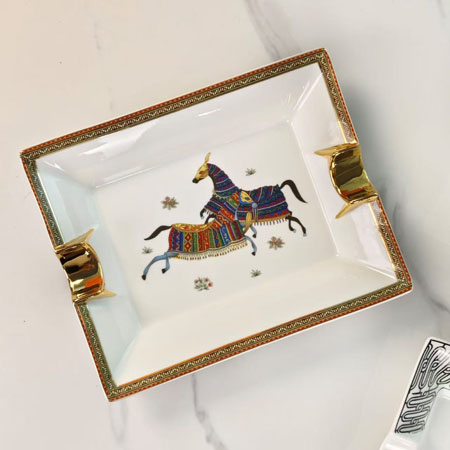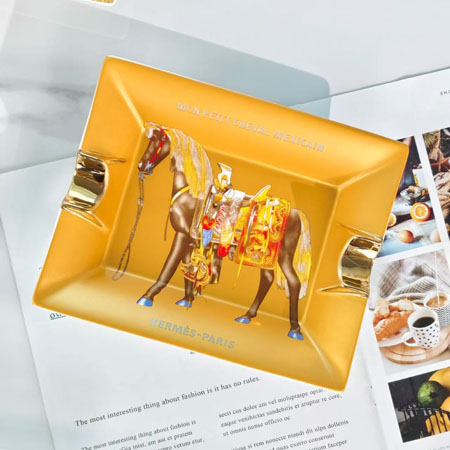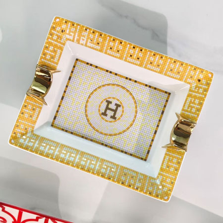 エルメス風の洗練された彫刻とロゴデザインが魅力の長方形トレイです。