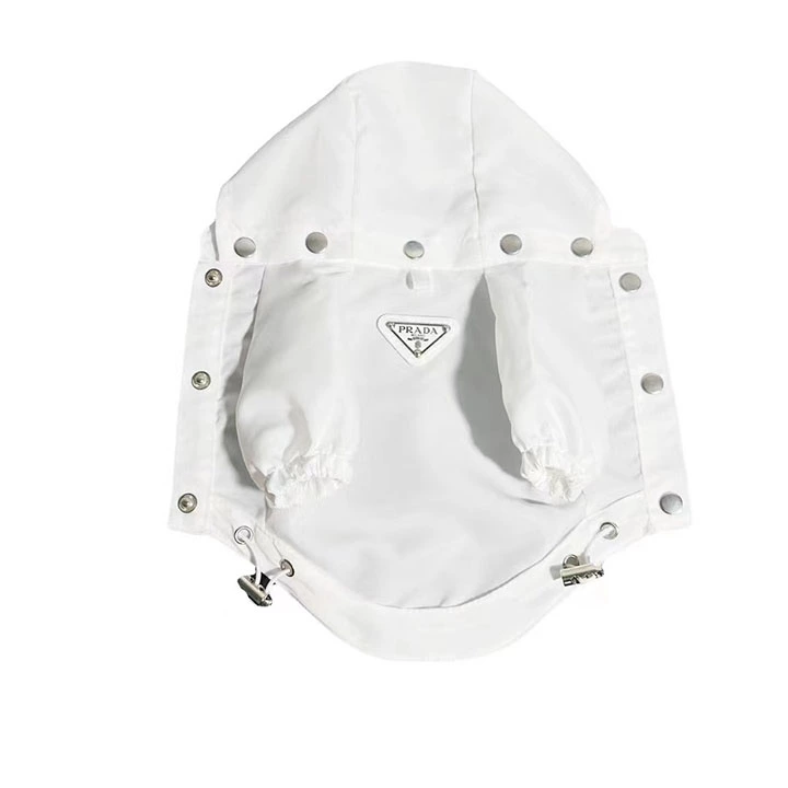 ハイブランド プラダ ペット用服 犬の服 パーカー フード付き 秋冬 防風 防寒 Prada 犬用品 ペットウェア 黒 白 犬洋服 ジャケット コート ボタン式 着脱簡単