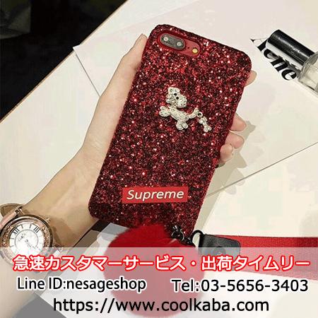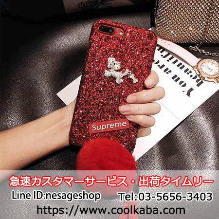 【商品名】シュプリーム 毛玉ケース カワイイ アイフォンテン携帯ケース ペット フワフワ iphone8/8plusスマホカバー キラキラ ダイヤモンド 女性向け supreme iphone7/6s plus 保護カバー ハンドストライプ付き もこもこ 海外人気